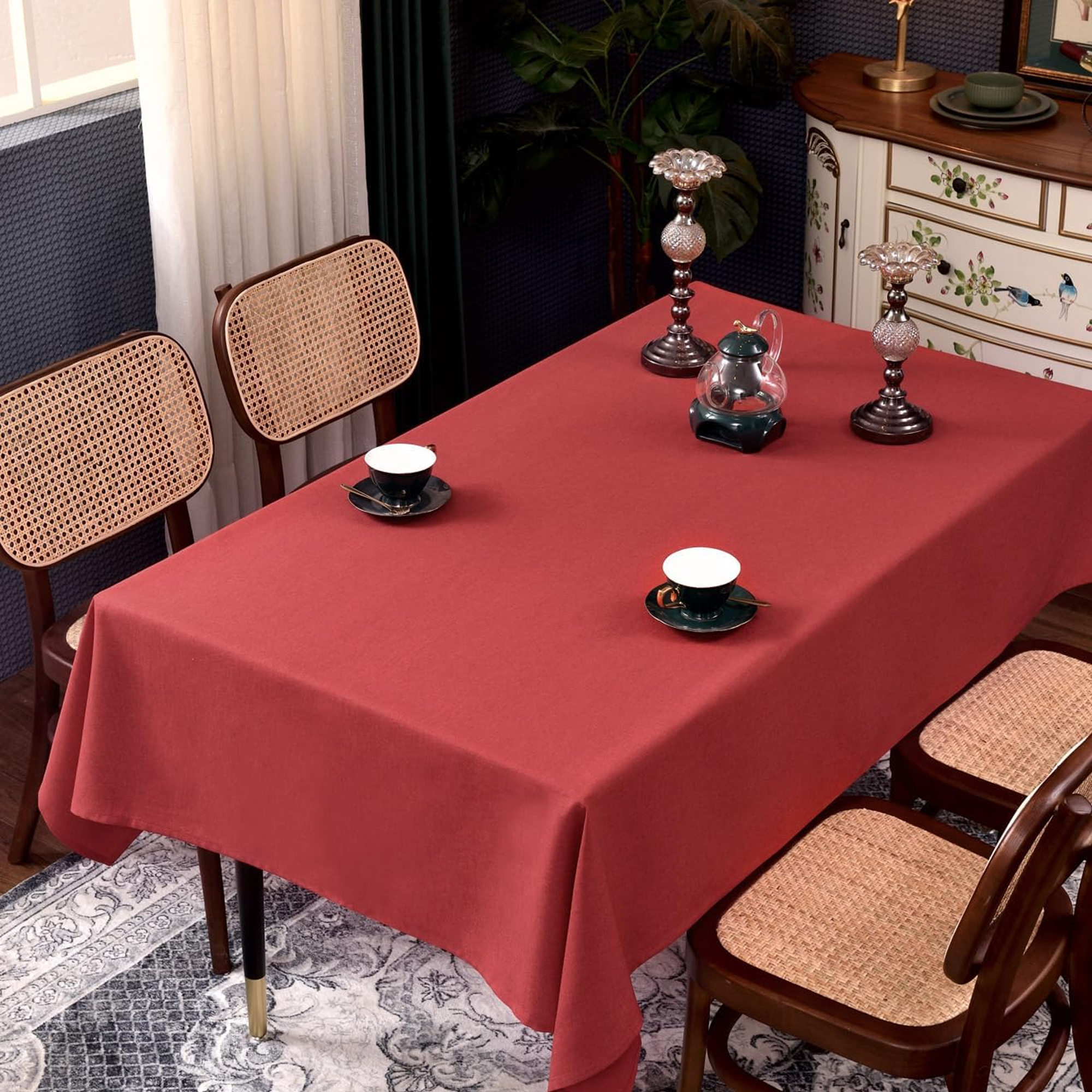 Decorative Fabric Table Cloth Rectangle Table easy-to-clean, heat-resistant is versatile and well-suited for various occasions, including buffet dinners, dining tables, tea tables, party table cloth, birthdays, weddings, banquets, picnics, BBQs, camping, barbecues, indoors, outdoors, Christmas or Thanksgiving dinner, Valentine's day and everyday use.