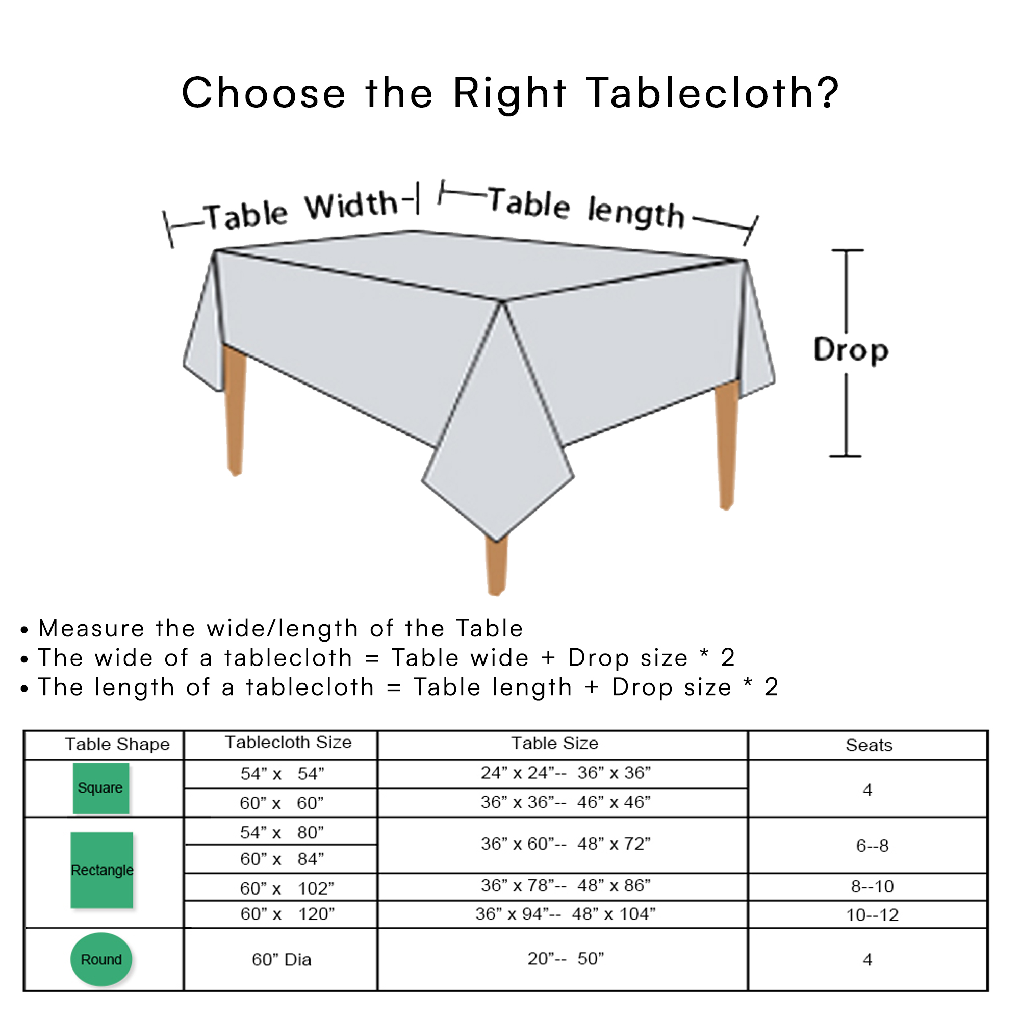 Size Guidelines Tablecloth
