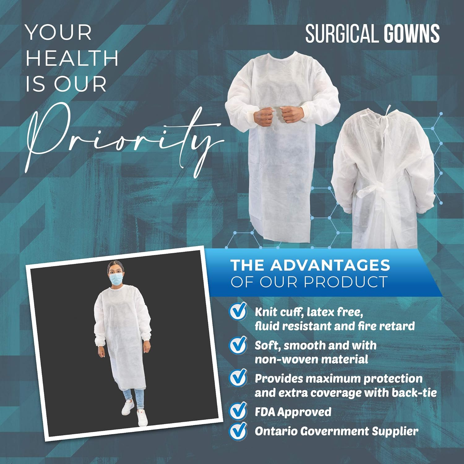 - PROTECTION:Â These disposable isolation gowns are made of surgical grade non-woven fabric, Spunbond-Polypropylene - to give maximum protection and ease of use.